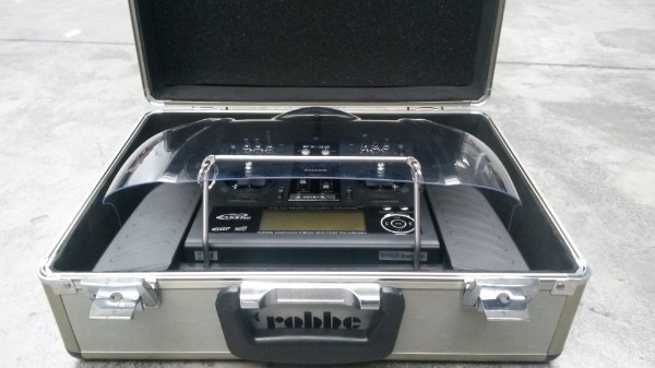 Selbstverständlich passt der Sender mit Senderpult und montiertem Wetterschutz in den originalen Senderkoffer.